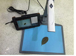 葉片蟲斑面積測量系統由圖像采集儀和裝入自主開發軟件的平板組成,采用積累的面積測量算法,根據葉片輪廓特征提取、圖形實物轉換、邊緣檢測等技術,能夠形象并快速得到所測葉片面積、周長、蟲洞數量等參數。
