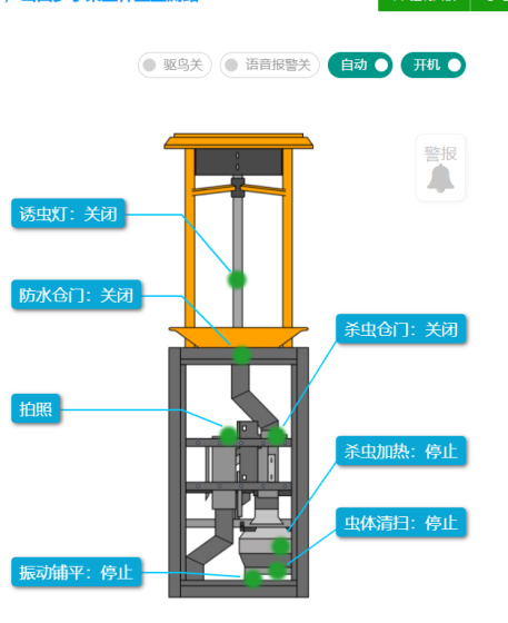 1、《人工AI智能蟲體識別系統》,具有人性化的數據查看視覺界面和操作、控制按鈕,輔助以設備立體結構圖片形式,展現蟲情測報燈的工作狀態和故障判斷。支持手機、PC端,免費使用。