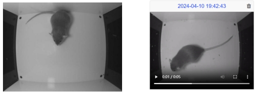 三、照片和視頻采集系統(非標配):配備最多兩個板載數字相機,其中一個主相機用來拍攝老鼠活動照片和視頻,一個副相機用來不定時拍攝老鼠活動的環境照片。